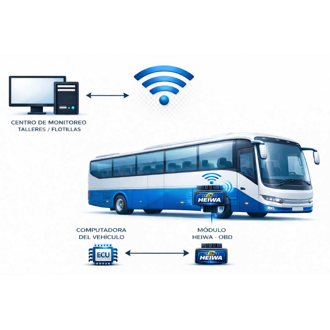 En caso de producirse una falla, el Centro de Monitoreo Automatizado enviará a una aplicación (HEIWA MECÁNICO que se ofrece sin costo adicional) instalada en el (los) teléfono(s) móvil(es) del(os) responsable(s) técnico(s) de la flotilla – mecánico(s) – la información de la falla producida (o alerta por el rebase de algún parámetro definido por el responsable técnico de la flotilla)
